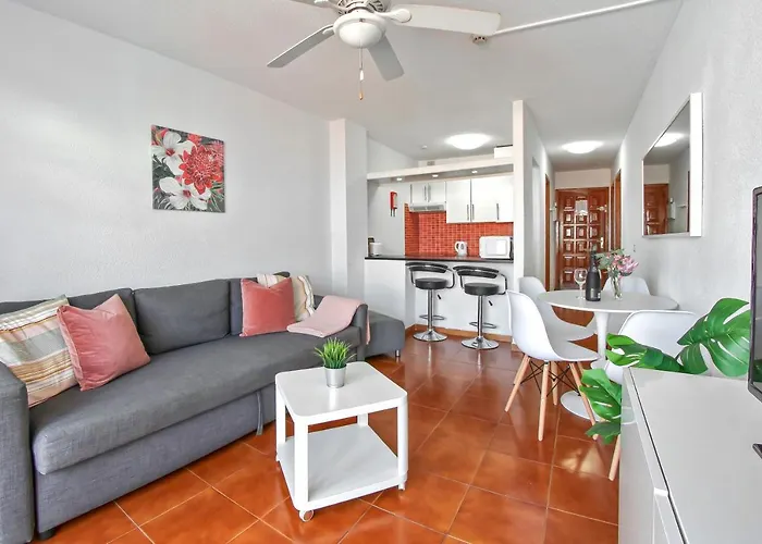 Quest'appartamento di 60 m², Bonito apartmento en Garden City con piscina climatizada Playa Feñabe, offre prossimità ad attrazioni turistiche come la Playa Torviscas, che si trova a soli 5 minuti a piedi. Situato a 450 metri dal Casino Playa de las Américas, quest'appartamento ha una terrazza si affaccia sul mare.